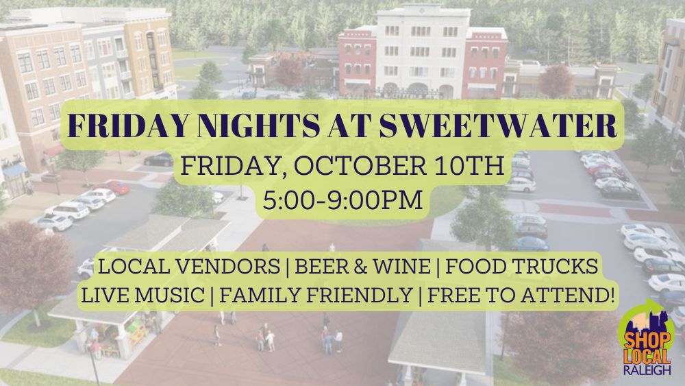 Learn more about the event and how to get involved at https://shoplocalraleigh.org/friday-nights-at-sweetwater/.