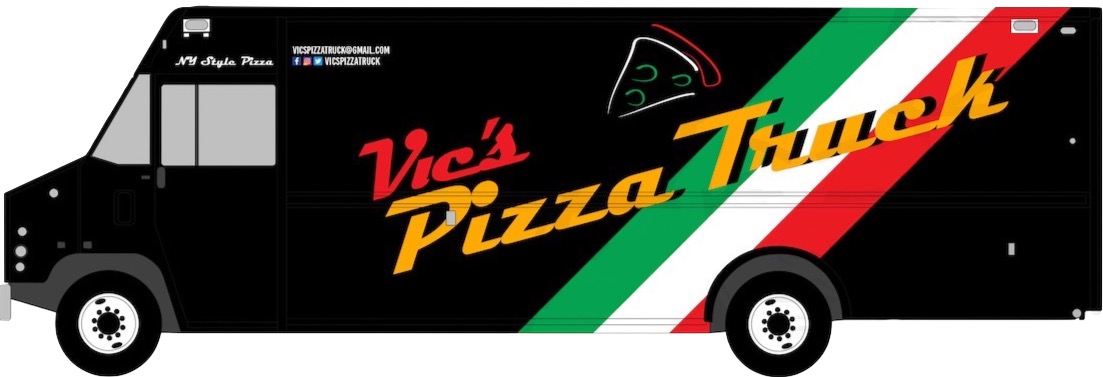 Vic’s Pizza Truck is on the move – the best authentic New York style pizza by the slice or whole pie, with wings, desserts and more!