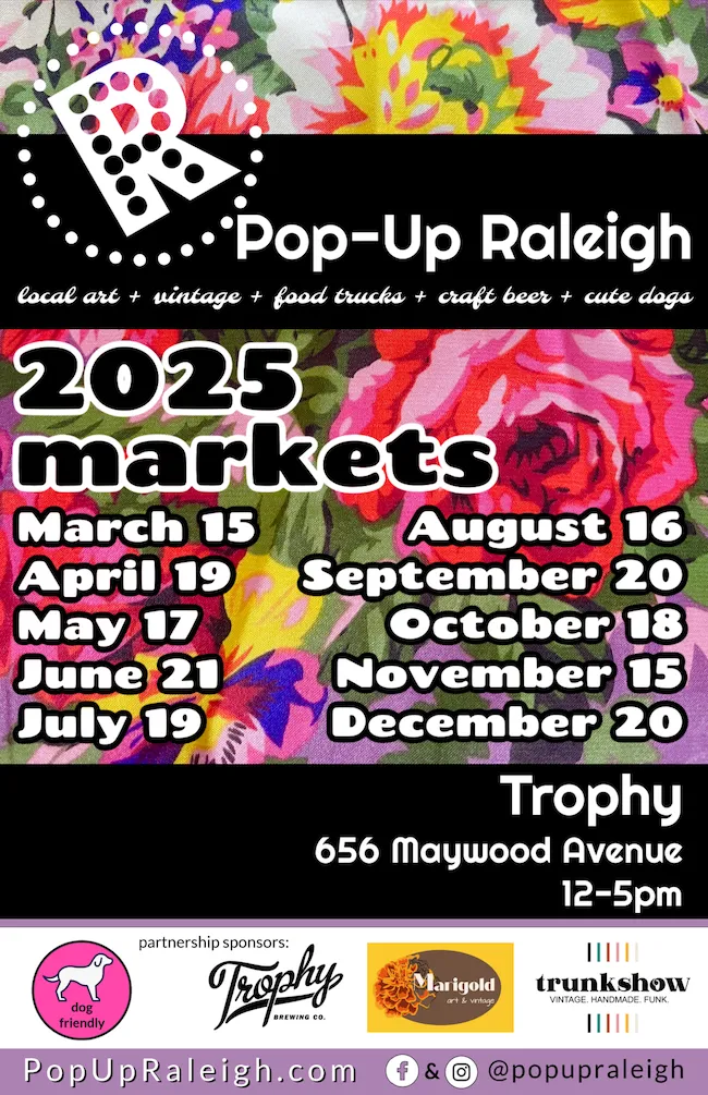 Pop-Up Raleigh is a monthly market where vintage sellers, artists, crafters and beer-lovers meet! It’s one of the best places...
