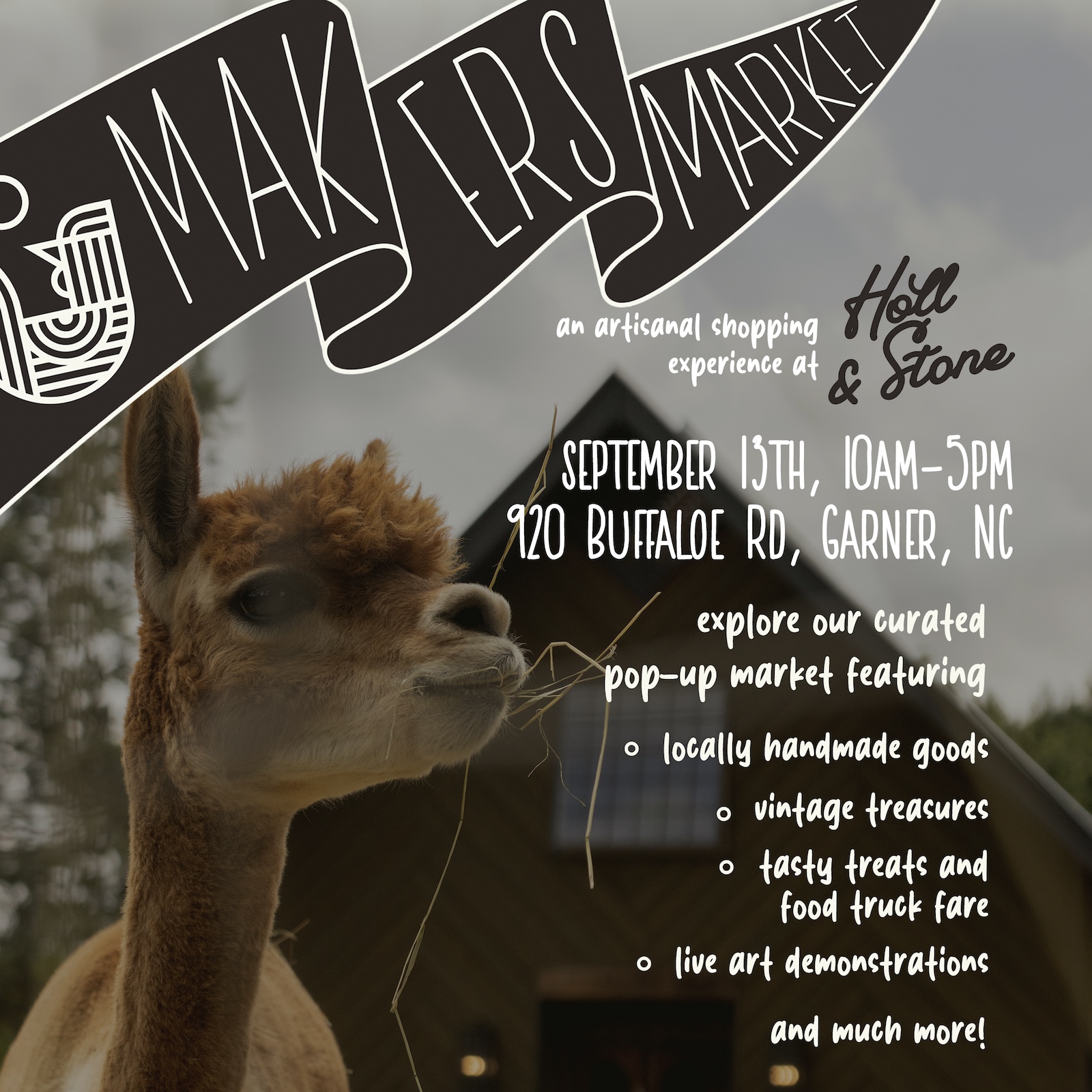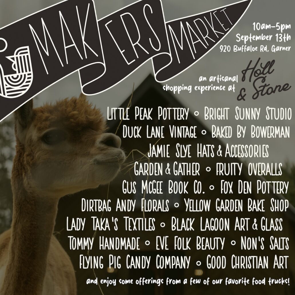 Head out to Holl & Stone Farms for an artisanal shopping experience Maker’s Market on September 13th! Explore their curated pop-up market featuring: