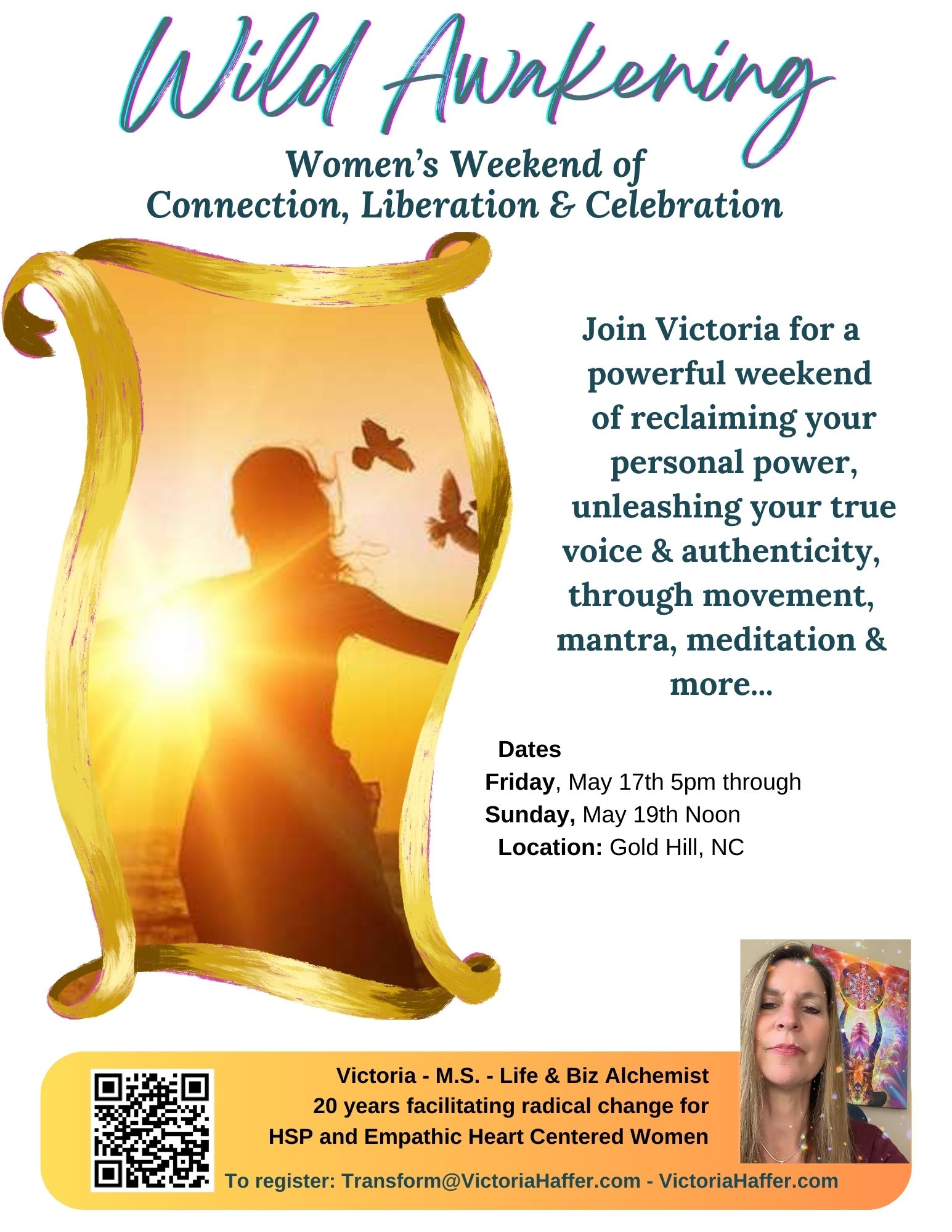 Join Victoria for this powerful weekend excursion of activating your inner spark and unleashing your soul passion. Through clearing old stories and outdated programing, self inquiry and somatic movement therapy you can choose a new road to true freedom and inner joy.