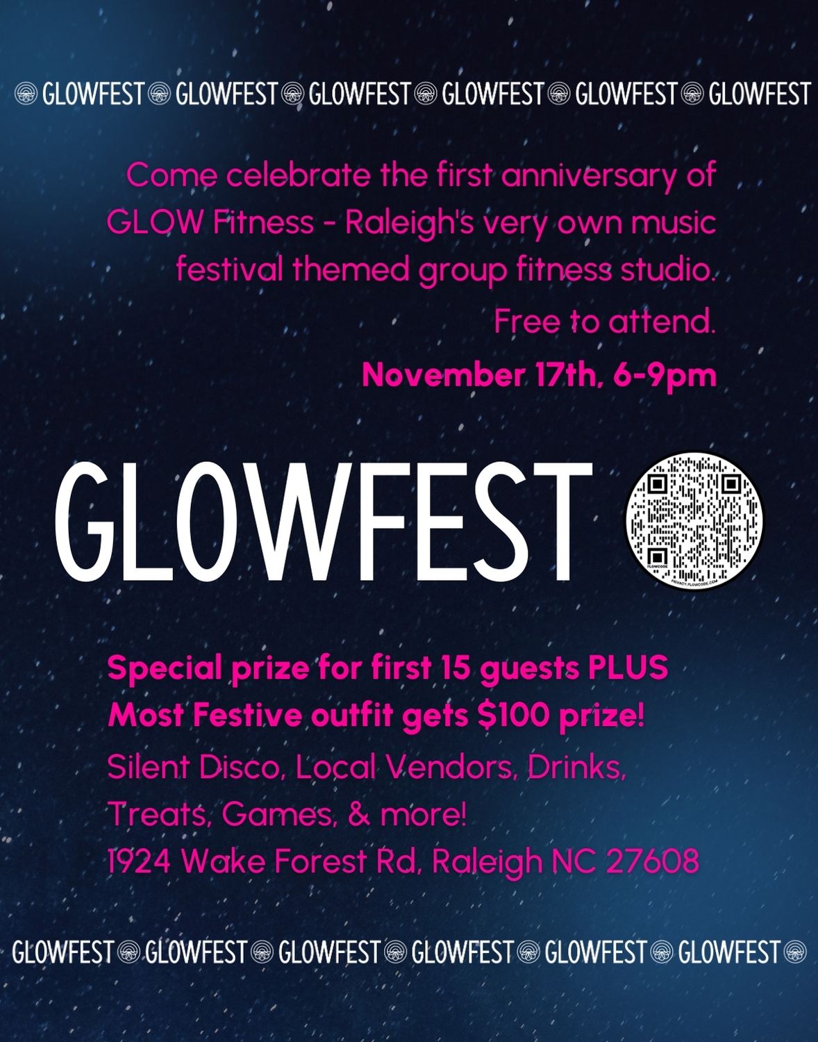 Come celebrate one year of GLOW with us at GLOWfest, our festival themed party! Wear your fav festival fit to come enjoy vendors, a silent disco, great vibes, & more ✨