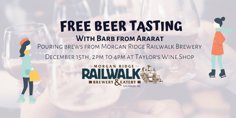 Barb from Ararat Import/Exports will be here ay Taylor’s Wine Shop on Saturday December 15th from 2pm until 4pm pouring craft beers from Morgan Ridge Railwalk Brewery!