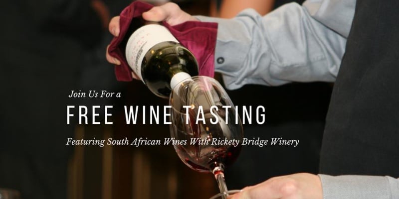 Join us for a Free South African Wine Tasting with Rickety Bridge Winery on Friday, August 10th from 6:30pm until 8:00pm at Taylor’s Wine Shop!