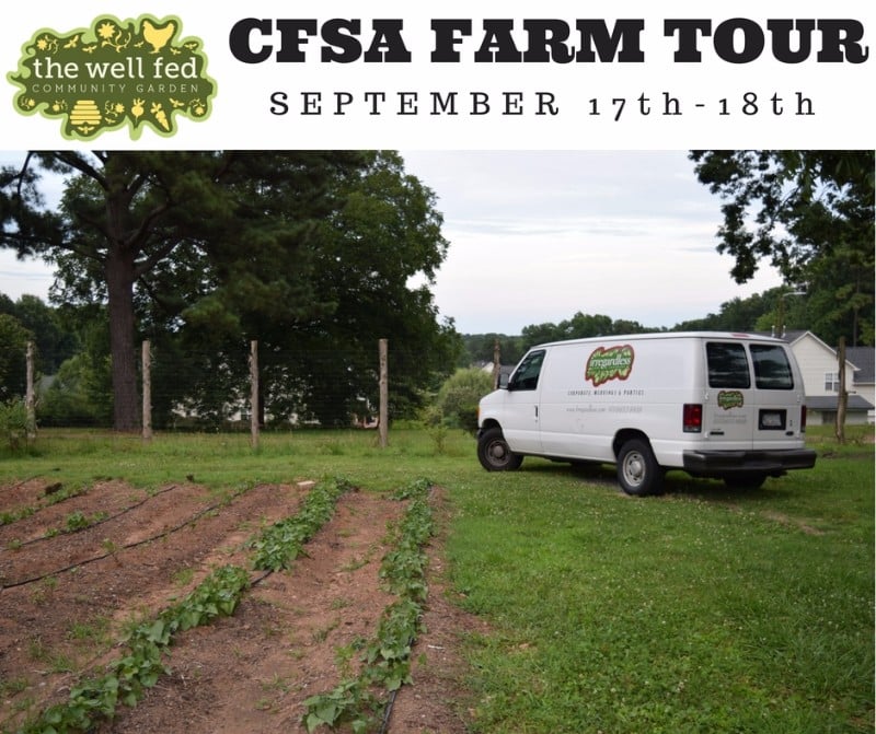 Tour local, sustainable farms and discover the delicious produce cultivated right here on the CFSA* Farm Tour on the Weekend of Sept 17 & 18, 1–5 pm on Saturday and Sunday. The Well Fed Community Garden is proud to be on of six agricultural sites in the City of Raleigh. There are a total of 25 farms to visit in the Triangle area. Registration is required with a small fee for each car visiting.