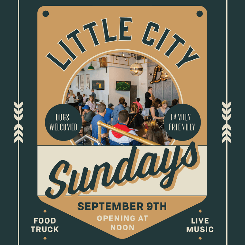 Little City Brewing and Provisions Co. is excited to announce that starting September 9, we’ll have live music, food trucks, drink specials, football, games, dogs & more for you all to enjoy every Sunday.