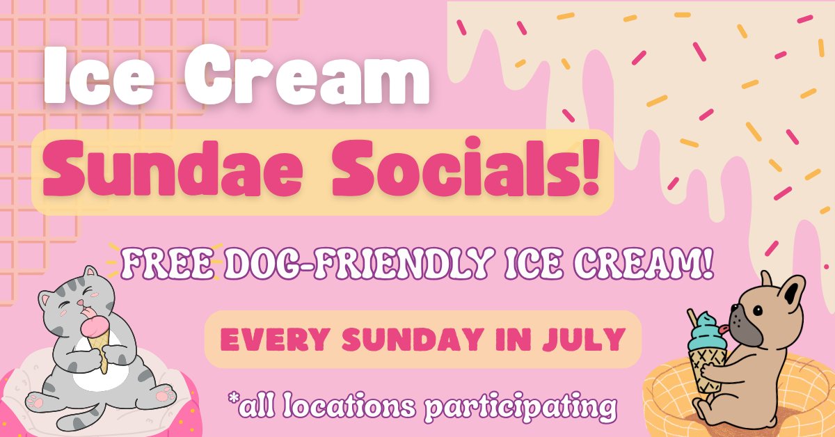 Every Sunday in July, stop by your local Unleashed and treat your pup to a FREE doggy ice cream! Whether they’re a first-time visitor, or a seasoned shopper, every good dog deserves a sweet treat