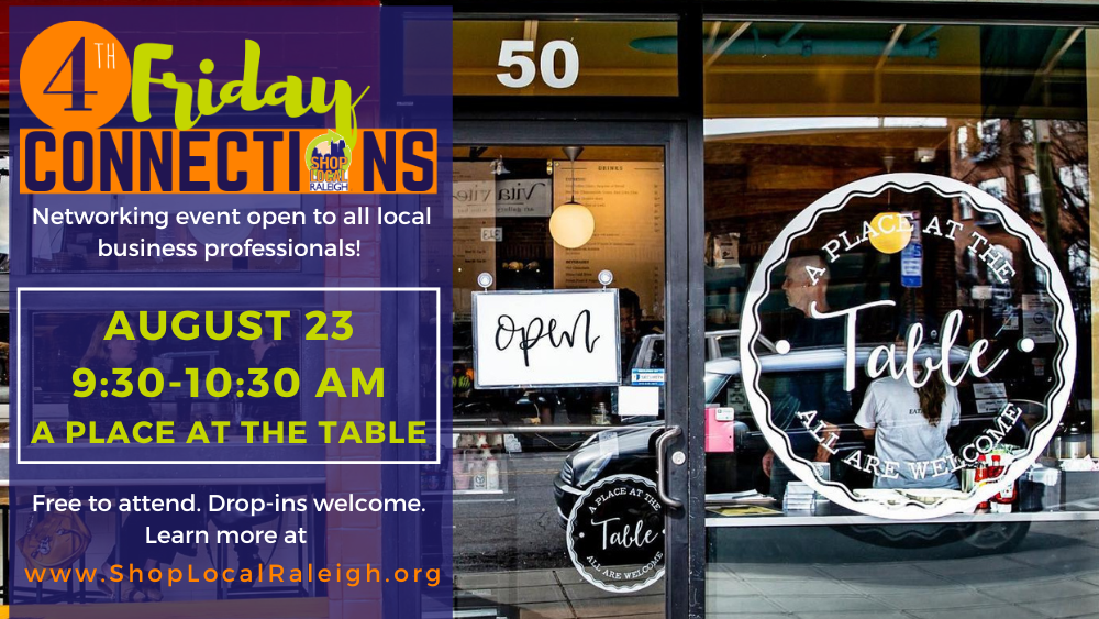 Get to know fellow Shop Local Raleigh members and meet local business professionals in a relaxed atmosphere during 4th Friday Connections!