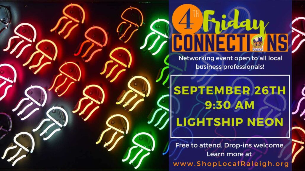 Get to know fellow Shop Local Raleigh members and meet local business professionals during 4th Friday Connections! We are excited for time to talk and learn together.