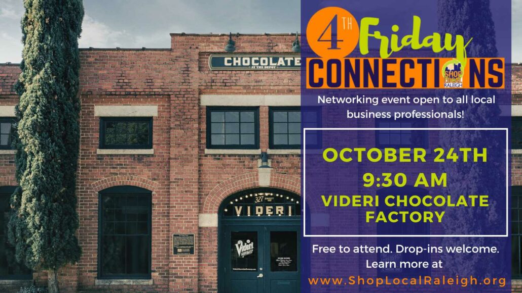 Get to know fellow Shop Local Raleigh members and meet local business professionals during 4th Friday Connections! We are excited for time to talk and learn together.