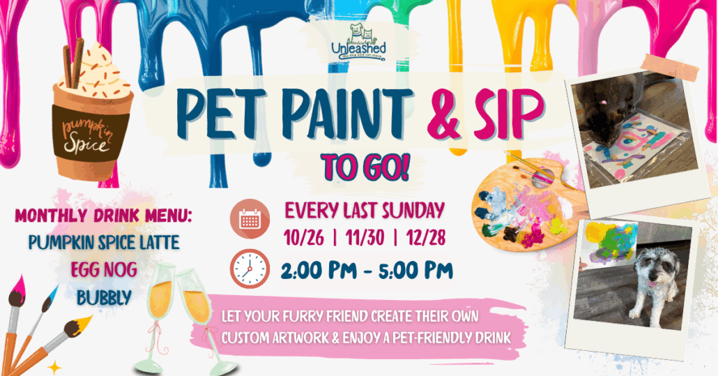 Let your dog or cat find their inner artist every final Sunday of the month for the rest of the year at Unleashed!