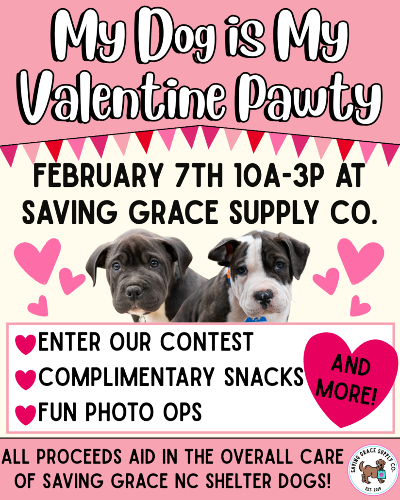 You’re invited to Saving Grace Supply Co.’s “My Dog is My Valentine” Pawty February 7th, 10am to 3pm at Saving Grace Supply Co.!