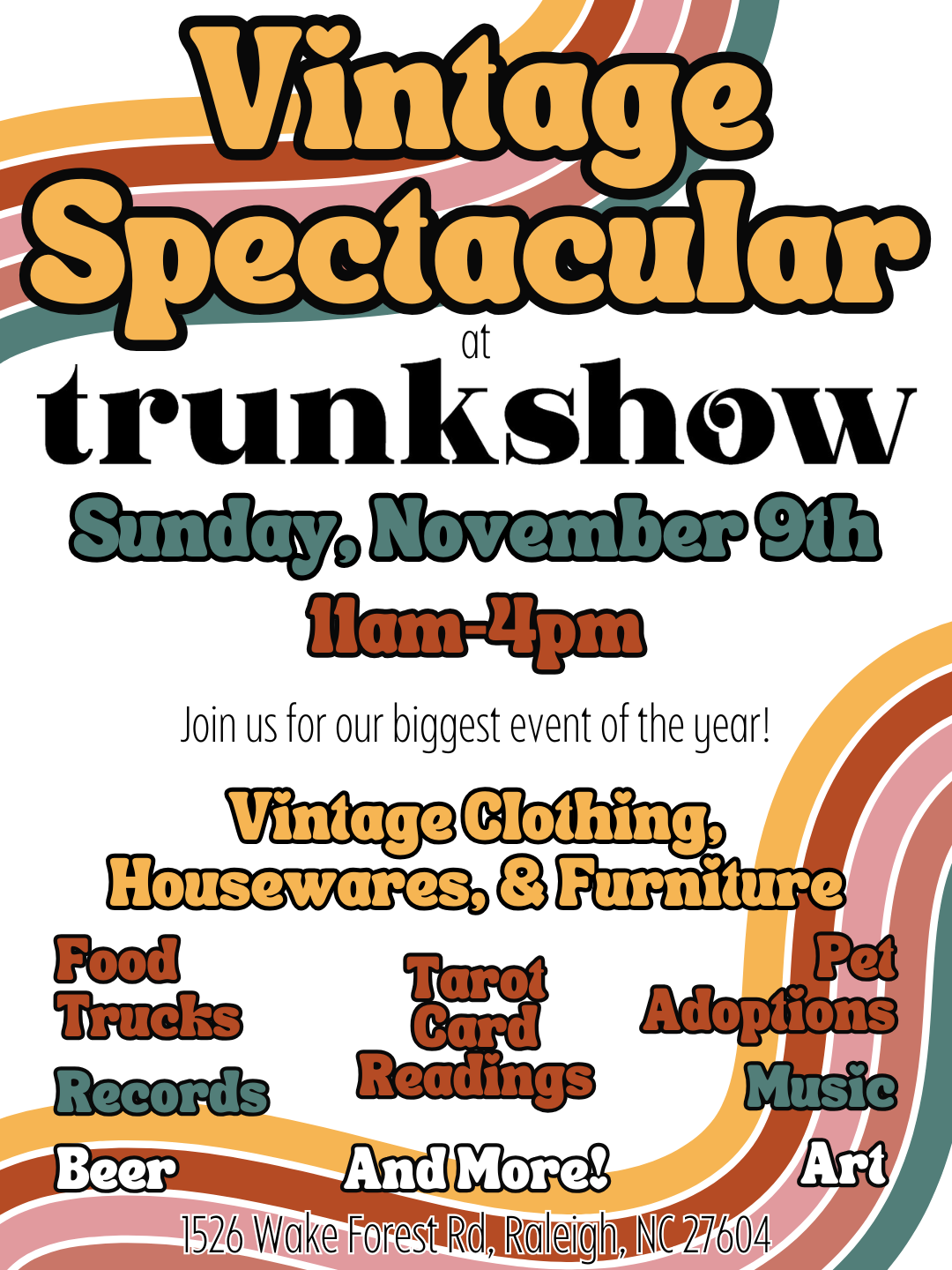 Trunkshow invites you to our Vintage Spectacular on Sunday, November 9th, from 11 AM to 4 PM!